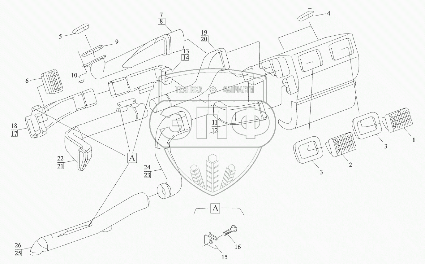 | 26 | 81.61950.0224 | Воздуховод правый в ноги | Нет на складе |