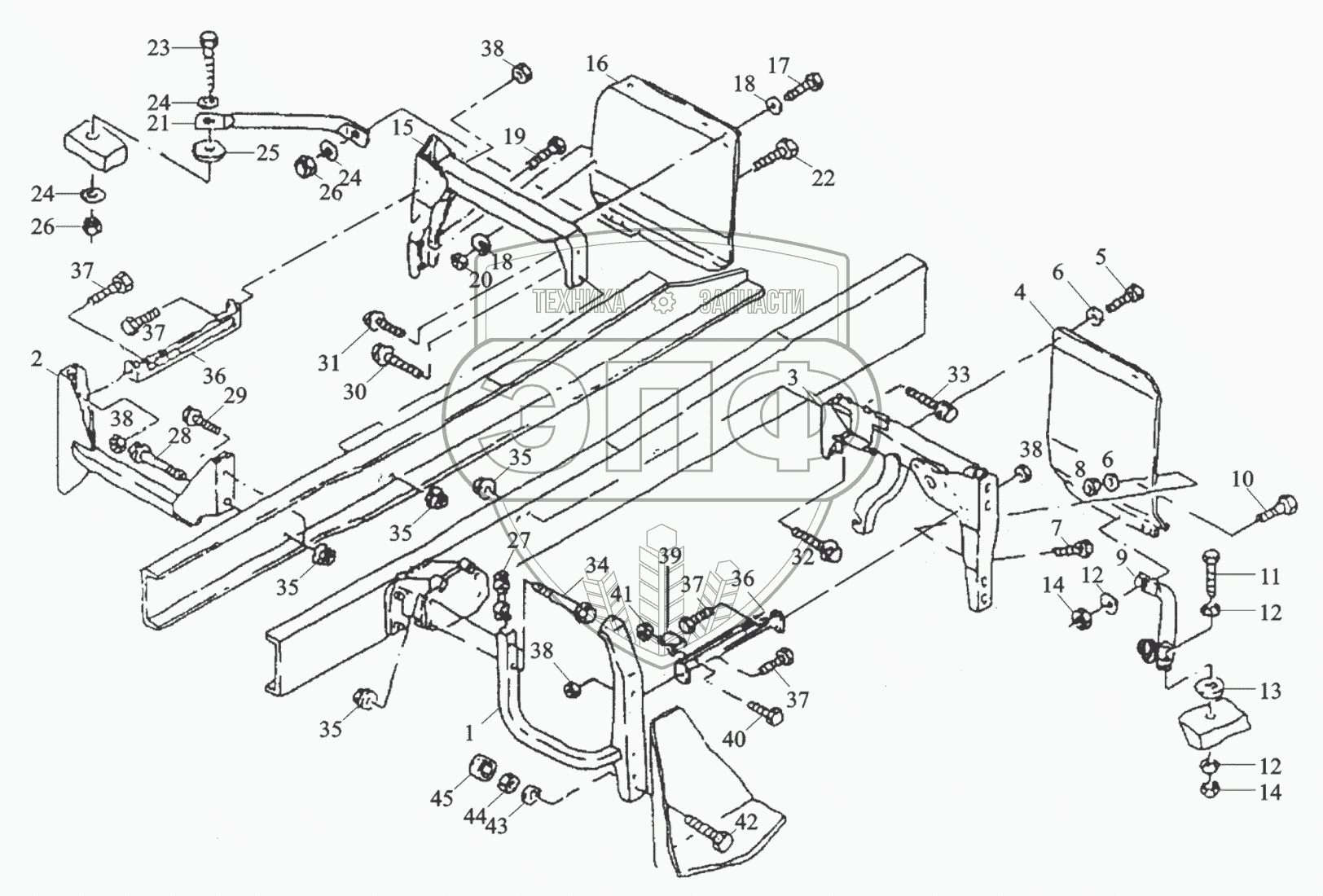 | 15 | DZ1640240250 | Кронштейн подножки задней правой в сборе | Нет на складе | |
