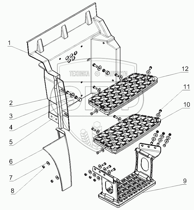 | 9 | DZ13241240940 | Cast aluminum hinged lower right step assembly | Нет на складе | |