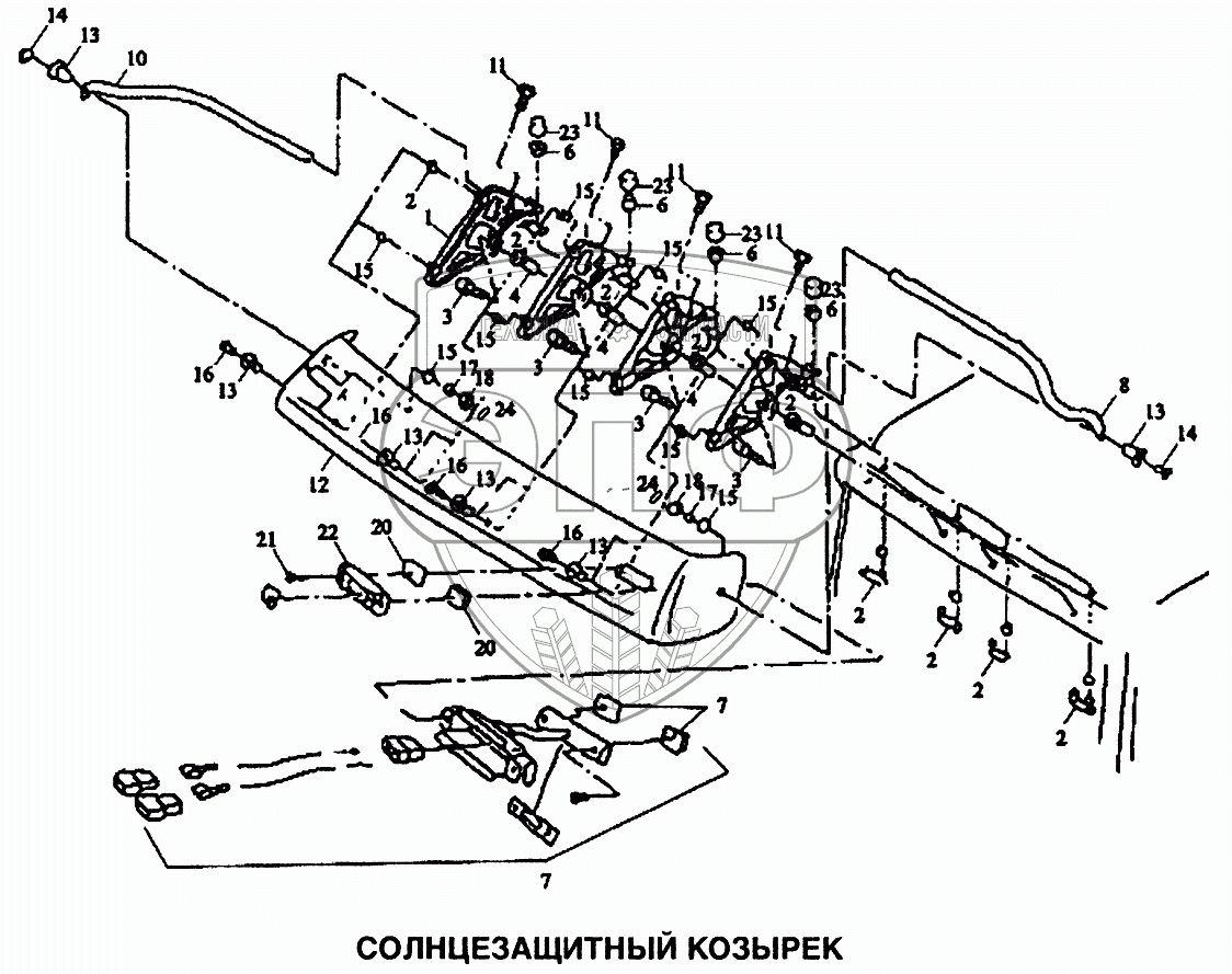 Каталог запасных частей к технике: Shaanxi SX-3255-DR 3804B 6х4. Козырек солнцезащитный