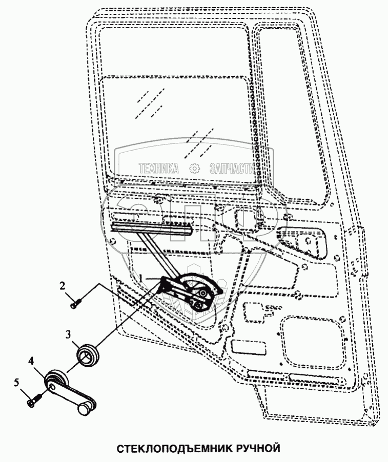 Каталог запасных частей к технике: Shaanxi SX-3255-DR 3804B 6х4. Стеклоподъемник ручной