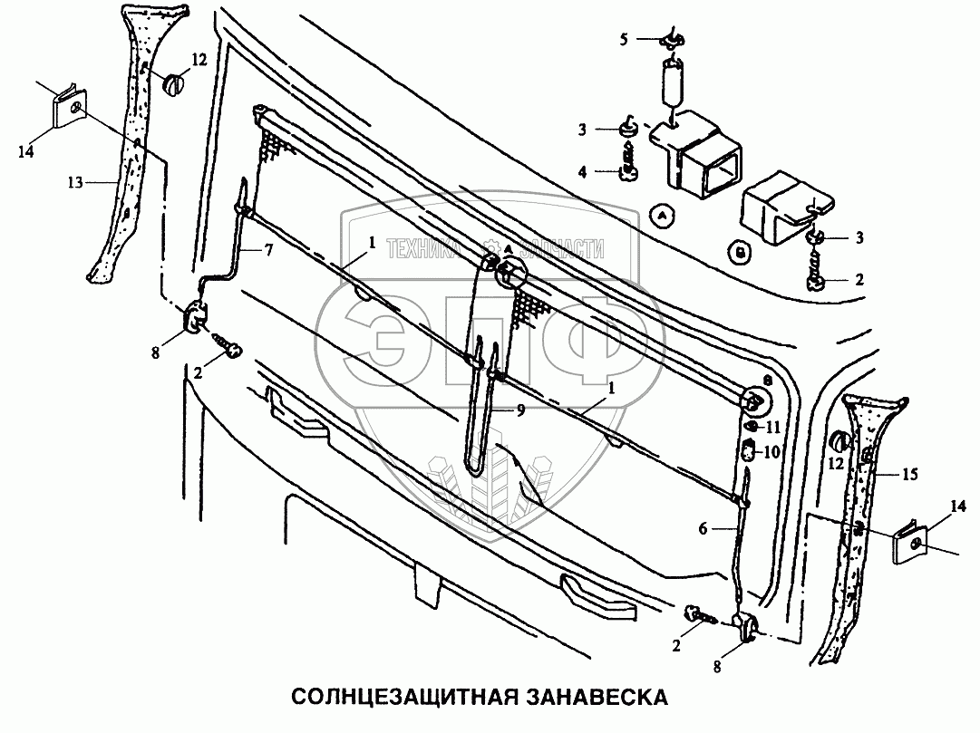 Каталог запасных частей к технике: Shaanxi SX-3255-DR 3804B 6х4. Занавеска солнцезащитная