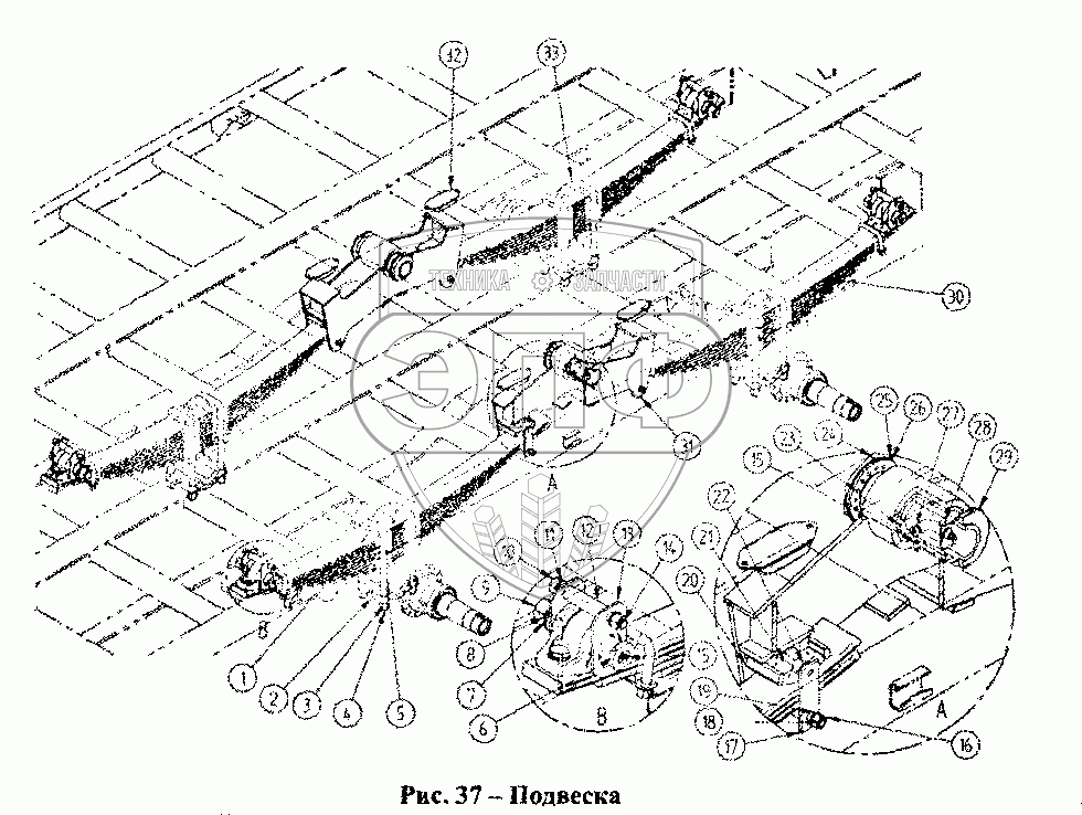 Каталог запасных частей к технике: Ставрапольский завод Автоприцепов СЗАП-93271. Подвеска