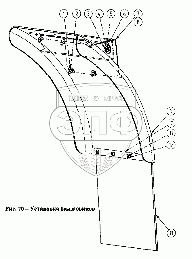 Каталог запасных частей к технике: Ставрапольский завод Автоприцепов СЗАП-9328. Установка брызговиков