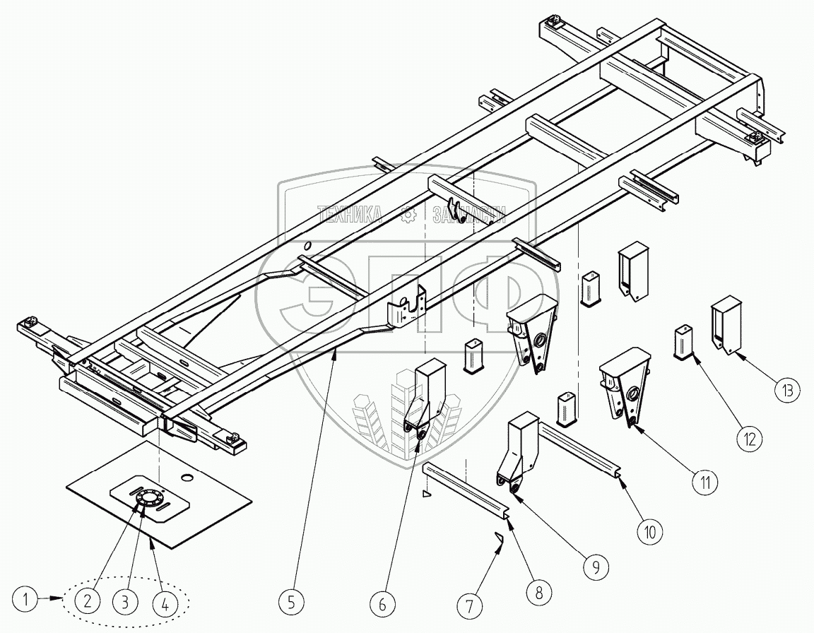 Каталог запасных частей к технике: Ставрапольский завод Автоприцепов СЗАП-9905. Рама