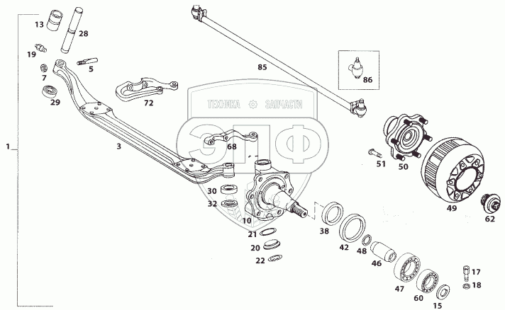 | 1 | 2643 3300 01 02 | Assy. Front Axle with Brakes (ABS) | Нет на складе | |
