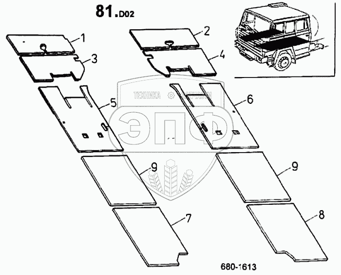 Каталог запасных частей к технике: ТАТРА 815-2 EURO II. Коврики (680)