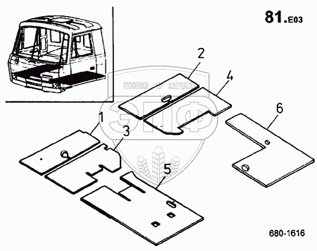 Каталог запасных частей к технике: ТАТРА 815-2 EURO II. Коврики (680)
