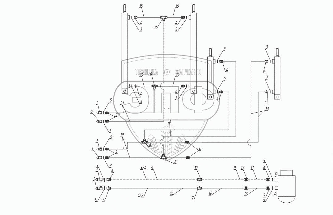 Каталог запасных частей к технике: Тонар ПТ4-30. Схема гидравлическая ВТ1