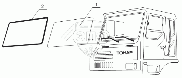Каталог запасных частей к технике: Тонар-4525. Лобовое стекло