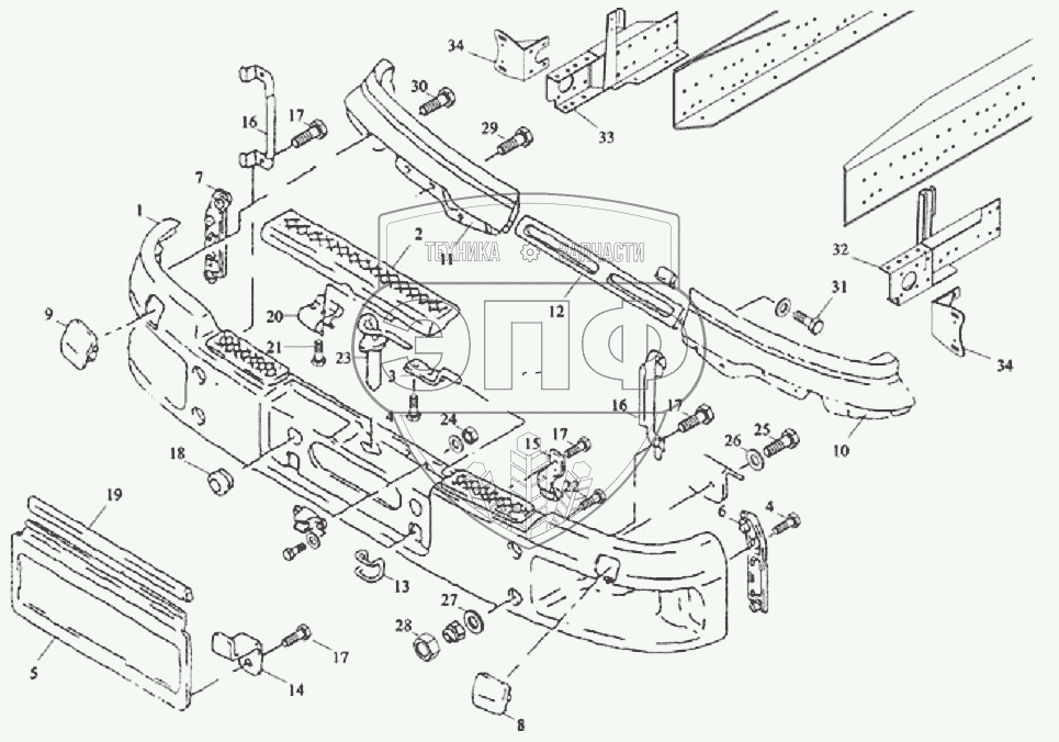 Каталог запасных частей к технике: Тонар-6428. Бампер и крепление