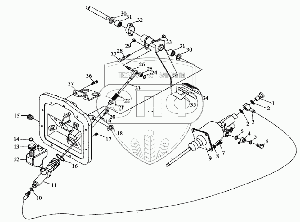 Каталог запасных частей к технике: Тонар-6428. Механизм привода сцепления