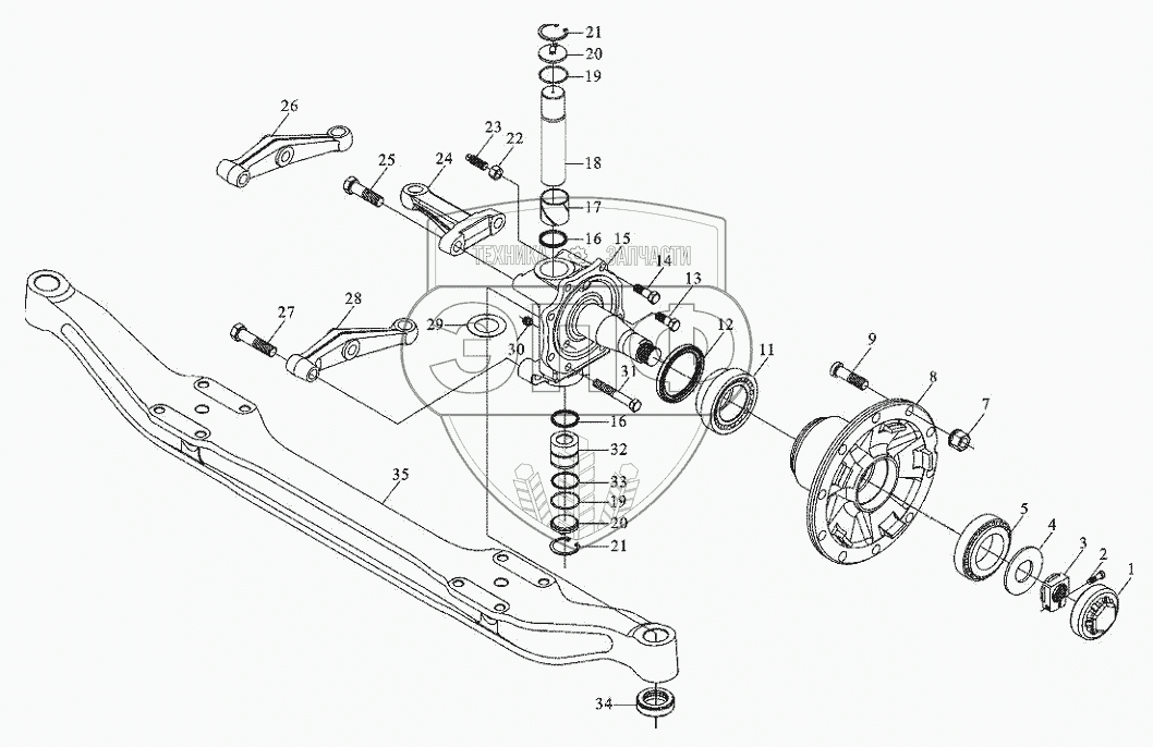 Каталог запасных частей к технике: Тонар-6428. Передний мост