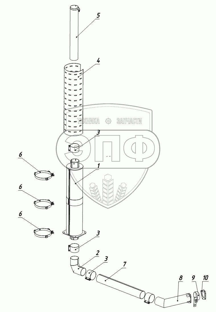 Каталог запасных частей к технике: Тонар-6428. Выхлопная система