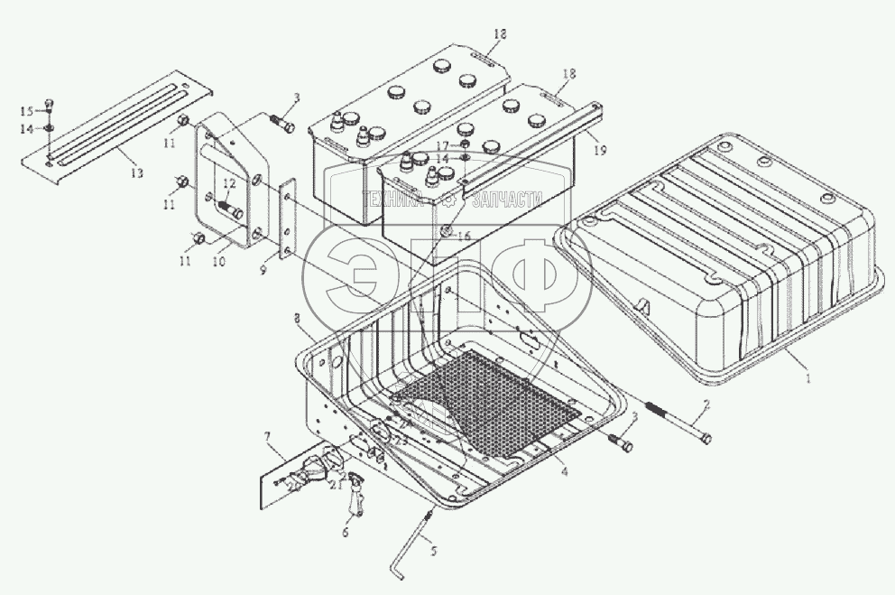 Каталог запасных частей к технике: Тонар-6428. Ящик аккумуляторных батарей
