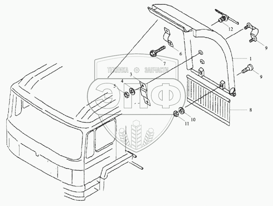 Каталог запасных частей к технике: Тонар-6428. Заднее крыло кабины правое