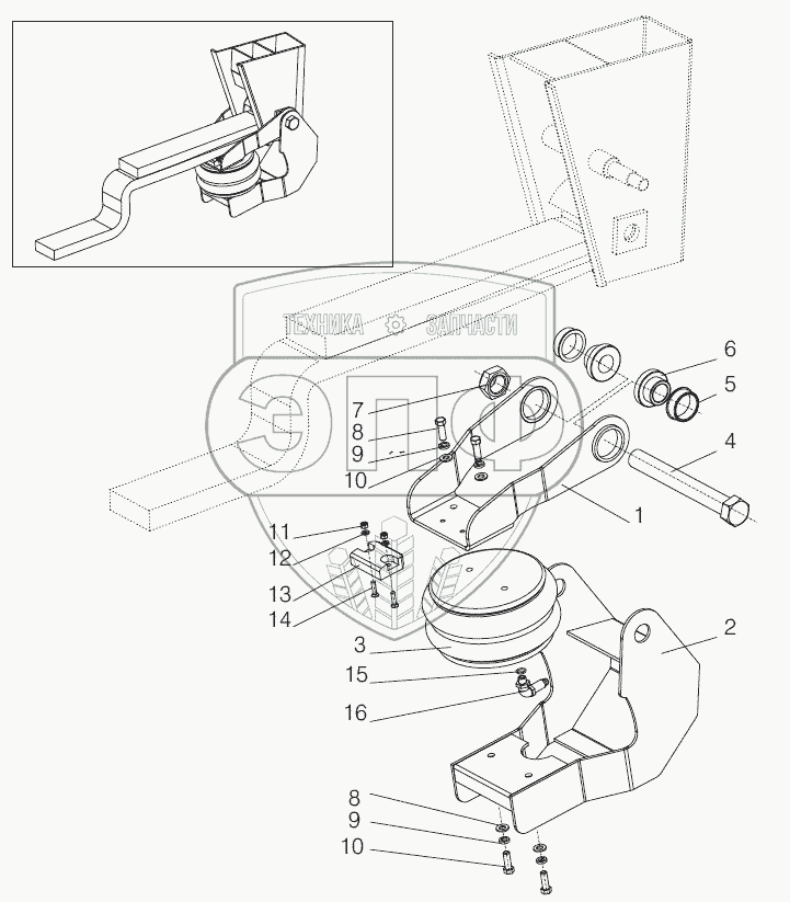 Каталог запасных частей к технике: Тонар-95231. Механизм подъема оси