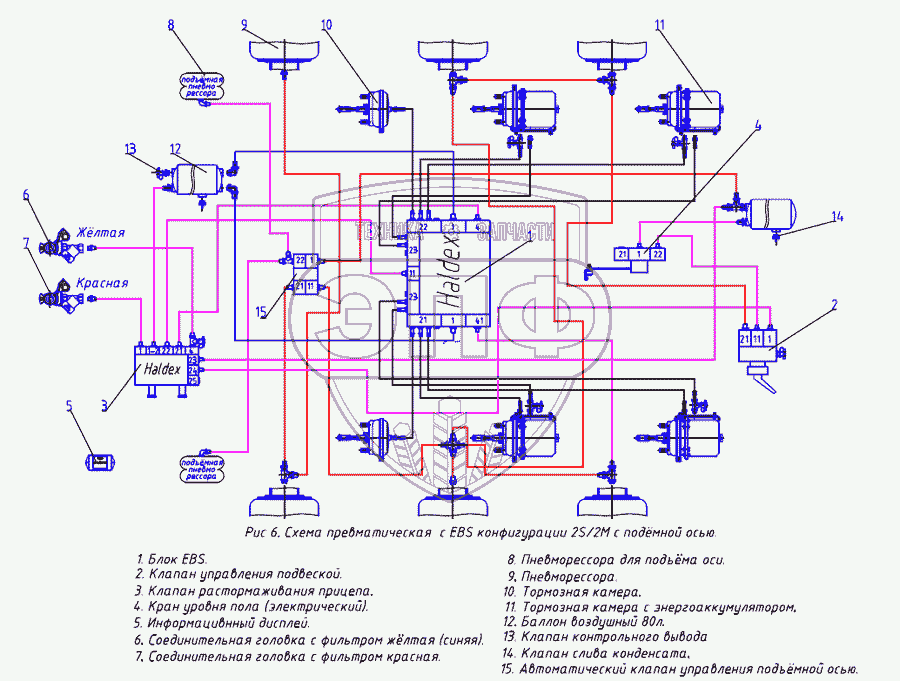 Каталог запасных частей к технике: Тонар-95231. Схема пневматическая Haldex