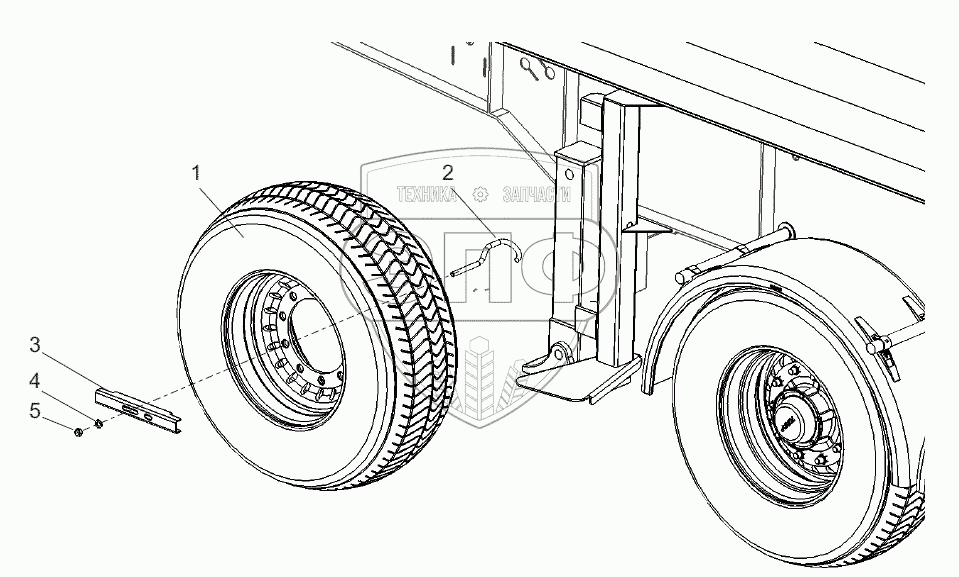 Каталог запасных частей к технике: Тонар-95231. Установка запасного колеса 9523-3105010