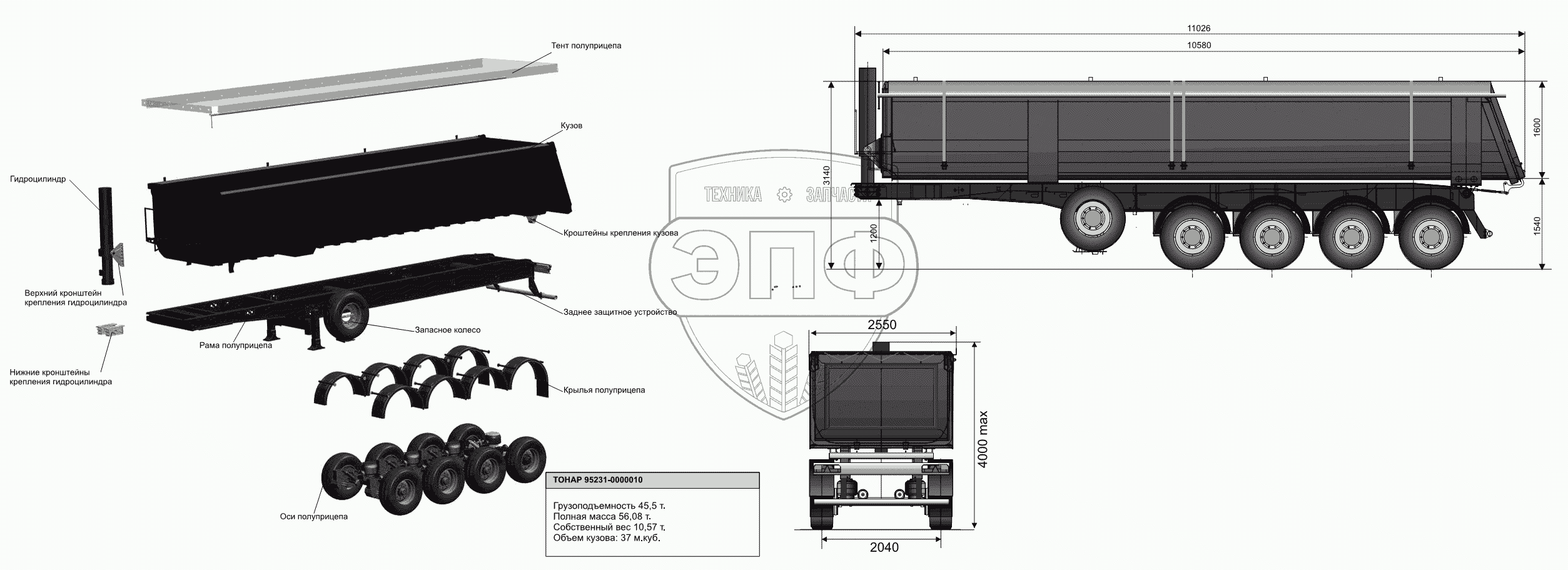 Каталог запасных частей к технике: Тонар-95234. Общий вид