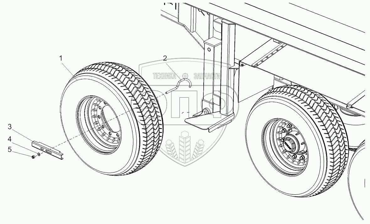 Каталог запасных частей к технике: Тонар-95234. Установка запасного колеса 9523-3105010