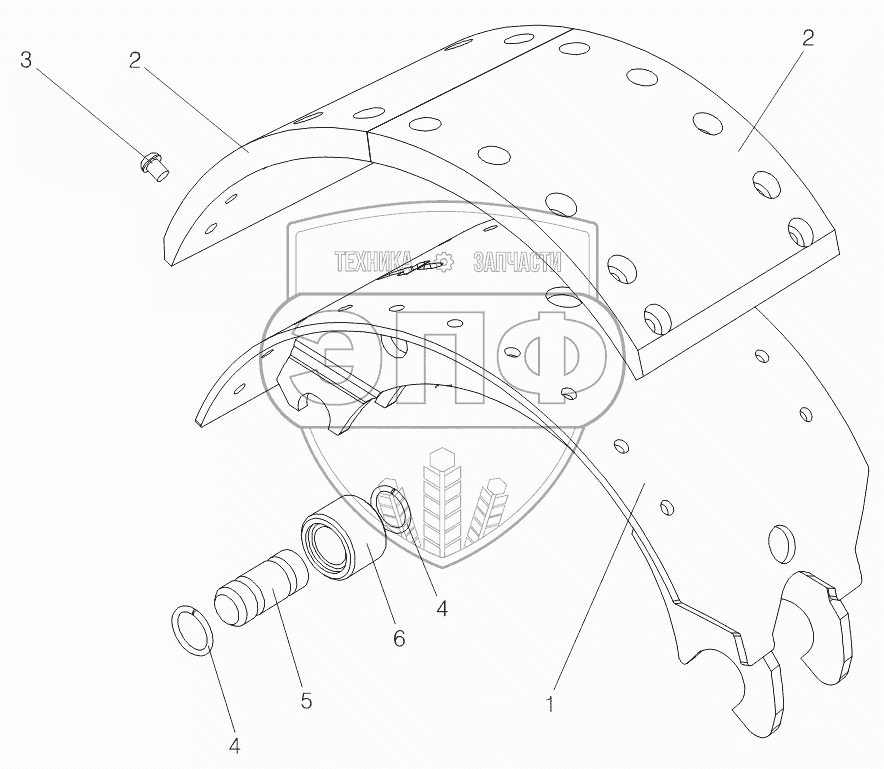 Каталог запасных частей к технике: Тонар-9523 (вариант). Колодка с накладками 2200080061