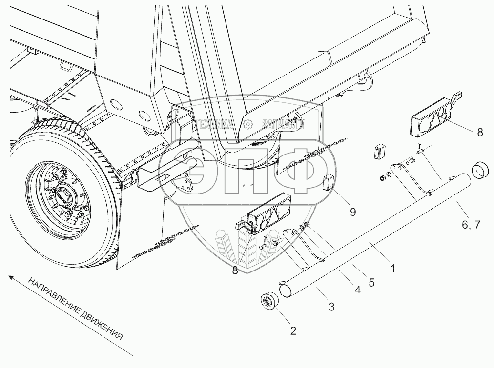 Каталог запасных частей к технике: Тонар-9523 (вариант). Установка заднего защитного устройства