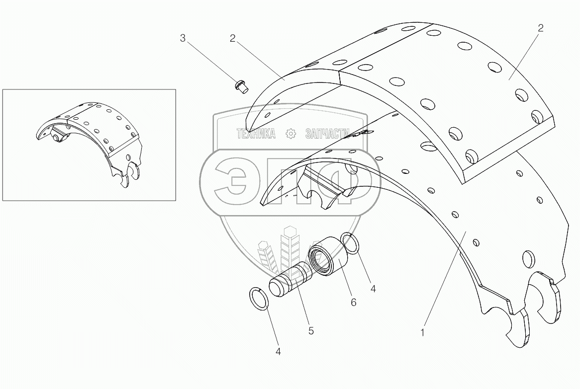 Каталог запасных частей к технике: Тонар-97461. Колодка с накладками 2200080061