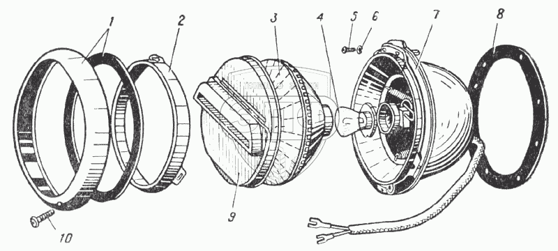 Каталог запасных частей к технике: УралАЗ УРАЛ-375. Фара (Рис. 118)