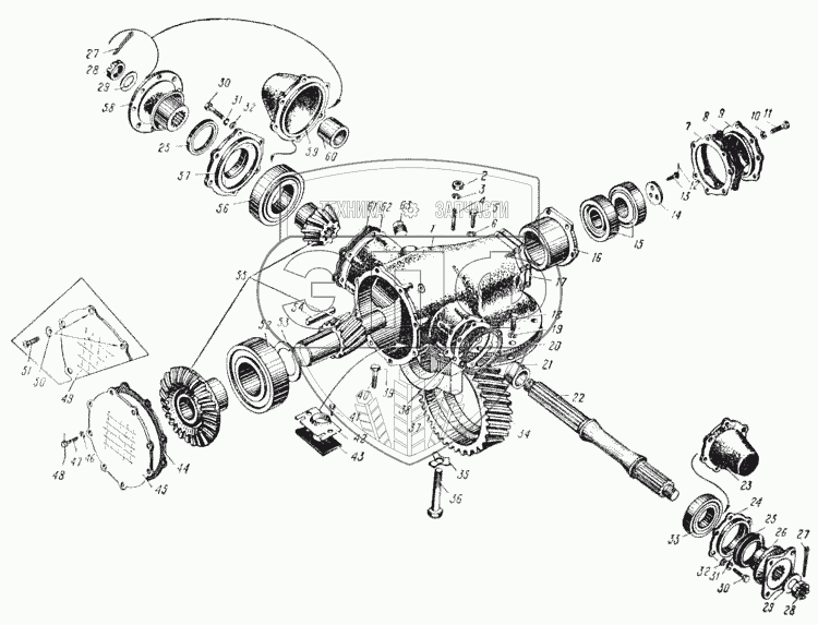 Каталог запасных частей к технике: УралАЗ УРАЛ-375. Главная передача (Рис. 56)