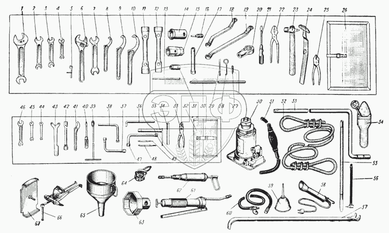 Каталог запасных частей к технике: УралАЗ УРАЛ-375. Инструмент (Рис. 123)
