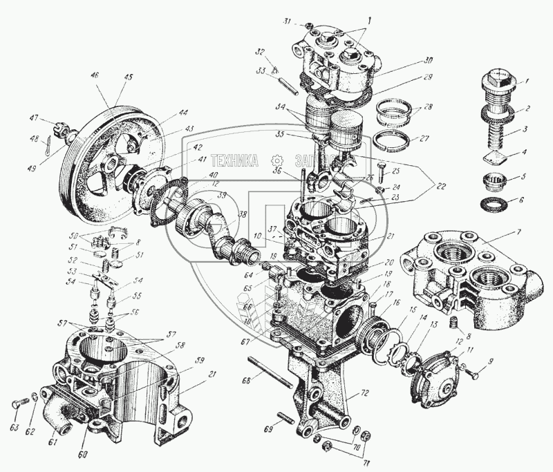 Каталог запасных частей к технике: УралАЗ УРАЛ-375. Компрессор (Рис. 98)