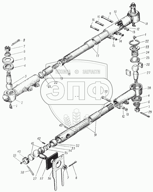 Каталог запасных частей к технике: УралАЗ УРАЛ-375. Рулевые тяги (Рис. 73)