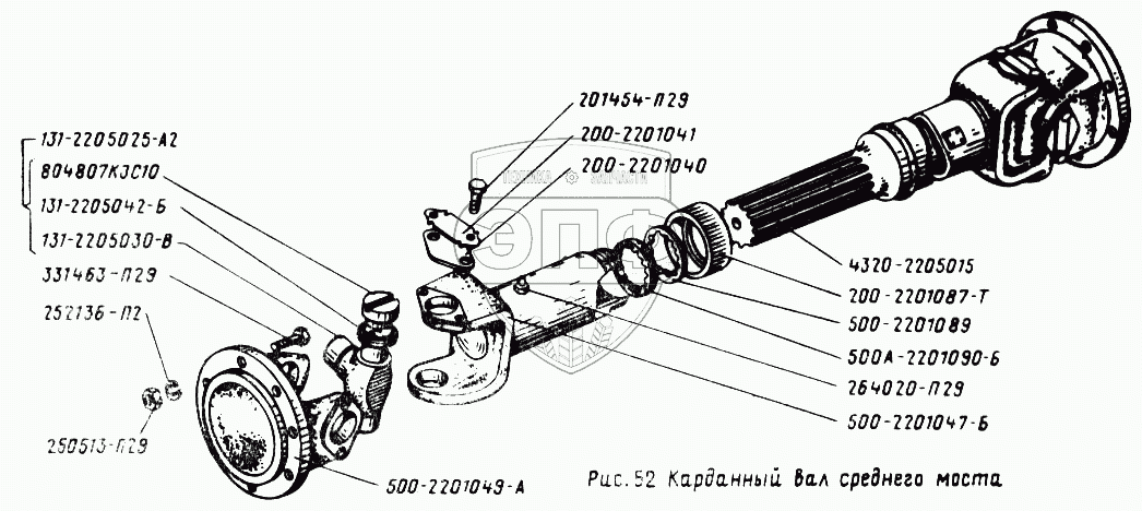Каталог запасных частей к технике: УралАЗ УРАЛ-43202. Карданный вал среднего моста