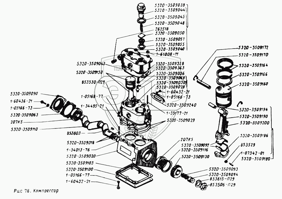 Каталог запасных частей к технике: УралАЗ УРАЛ-43202. Компрессор