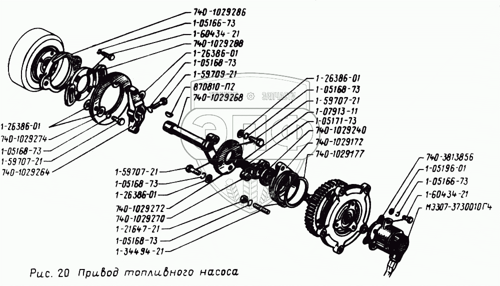 Каталог запасных частей к технике: УралАЗ УРАЛ-43202. Привод топливного насоса