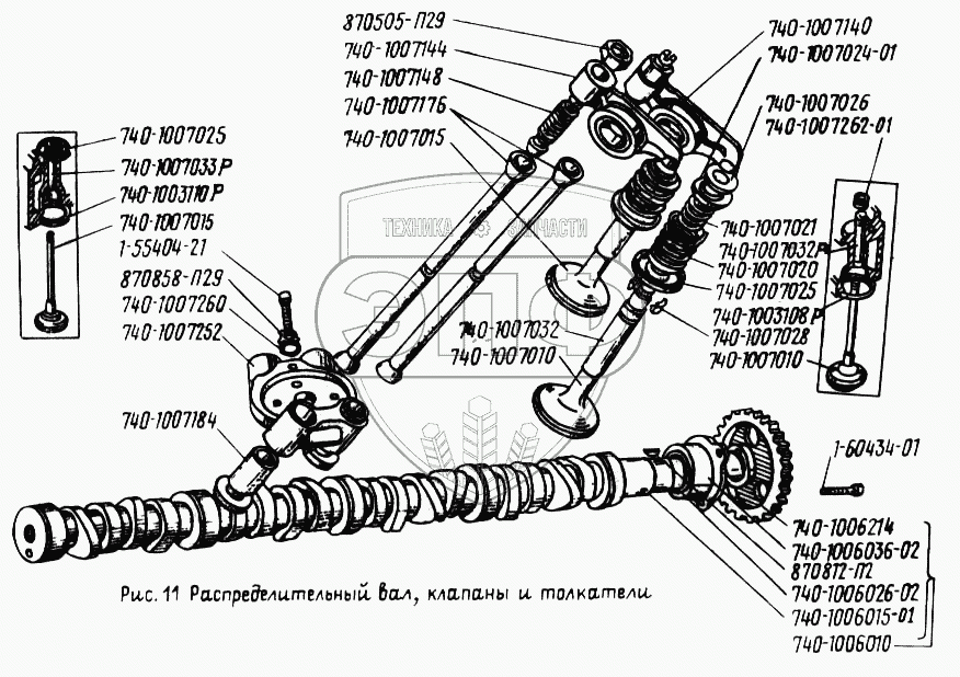 Каталог запасных частей к технике: УралАЗ УРАЛ-43202. Распределительный вал, клапаны и толкатели