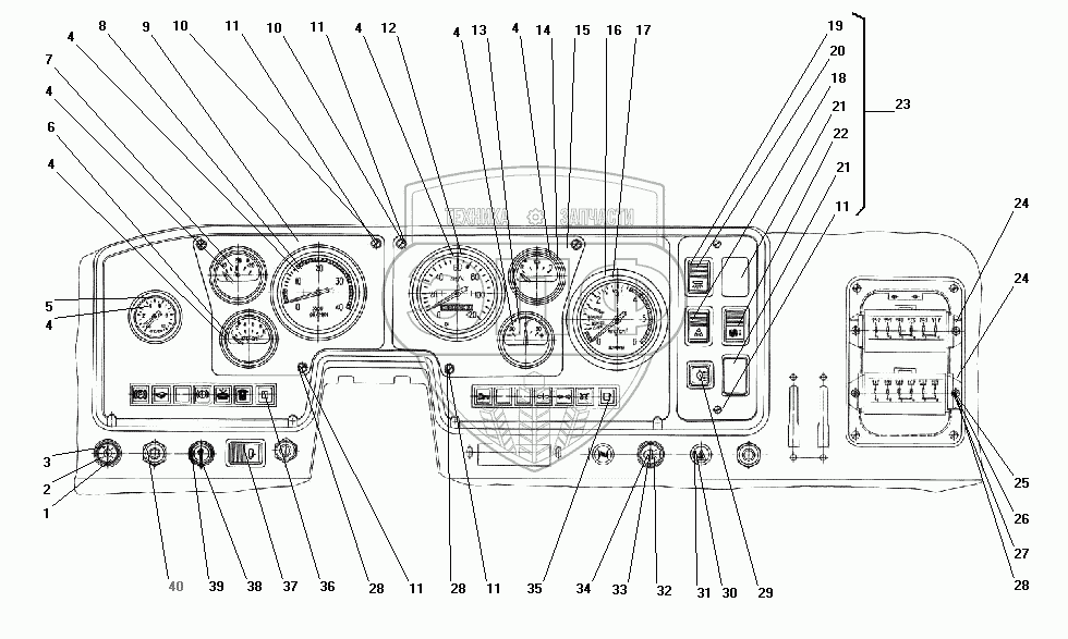 | 23 | 4320-3805015 | Щиток приборов выключателей в сборе | Нет на складе | |