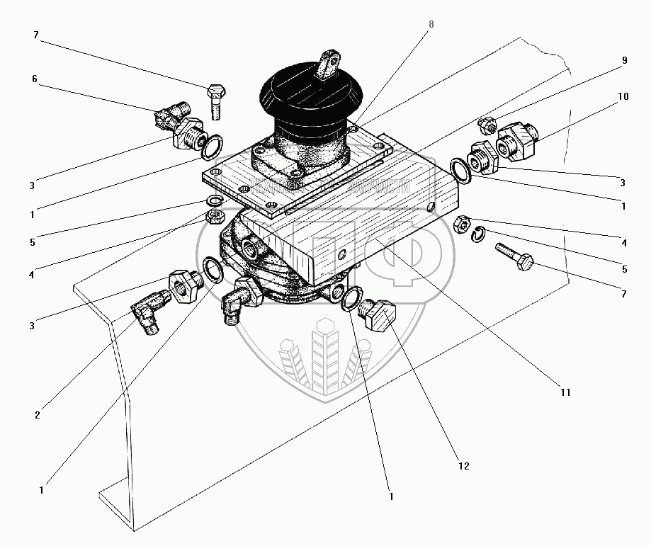 Каталог запасных частей к технике: УралАЗ УРАЛ-43203-10. Установка тормозного крана