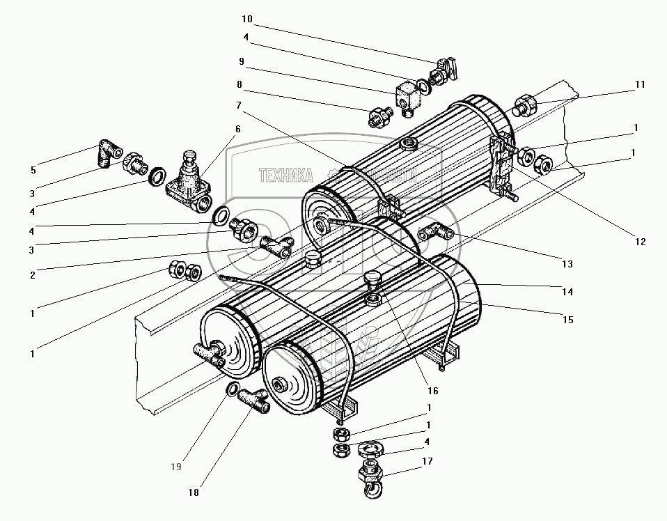 Каталог запасных частей к технике: УралАЗ УРАЛ-43203-10. Установка воздушных баллонов