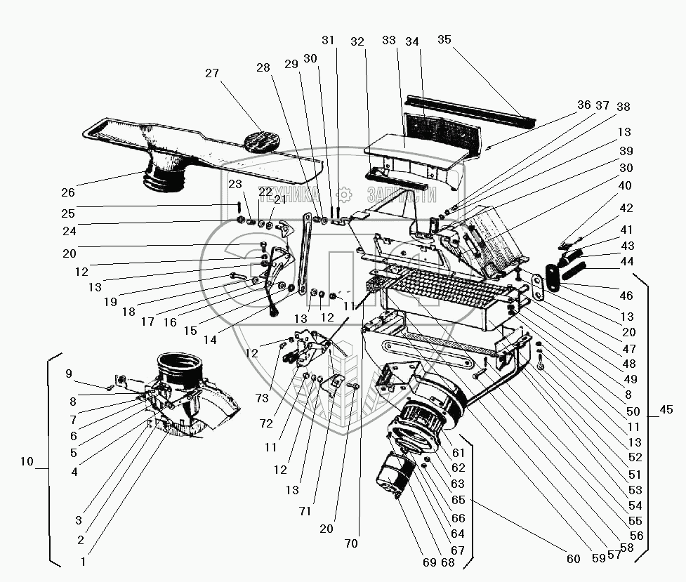 Каталог запасных частей к технике: УралАЗ УРАЛ-43203-10. Вентиляция и отопление кабины
