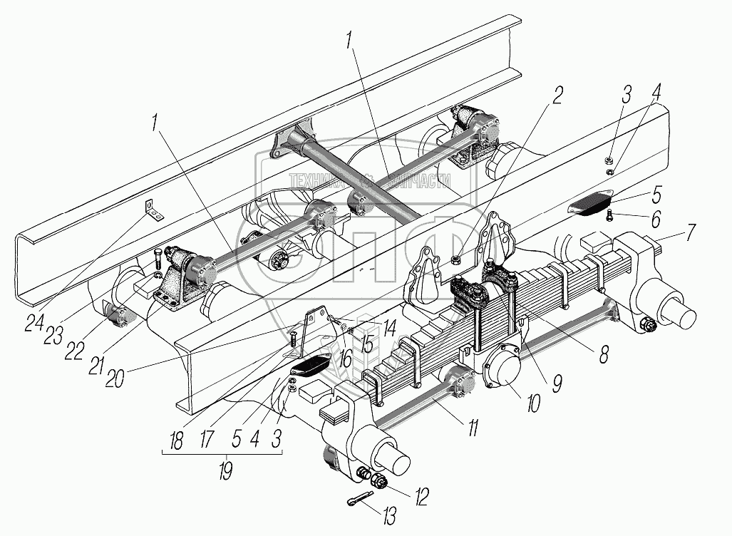 Каталог запасных частей к технике: УралАЗ УРАЛ-43204-1153-70. Задняя подвеска