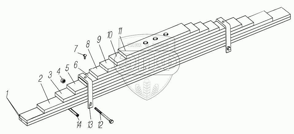 Каталог запасных частей к технике: УралАЗ УРАЛ-43204-1153-70. Задняя рессора