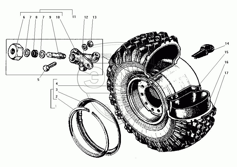 Каталог запасных частей к технике: УралАЗ УРАЛ-43206-41. Колесо и шина