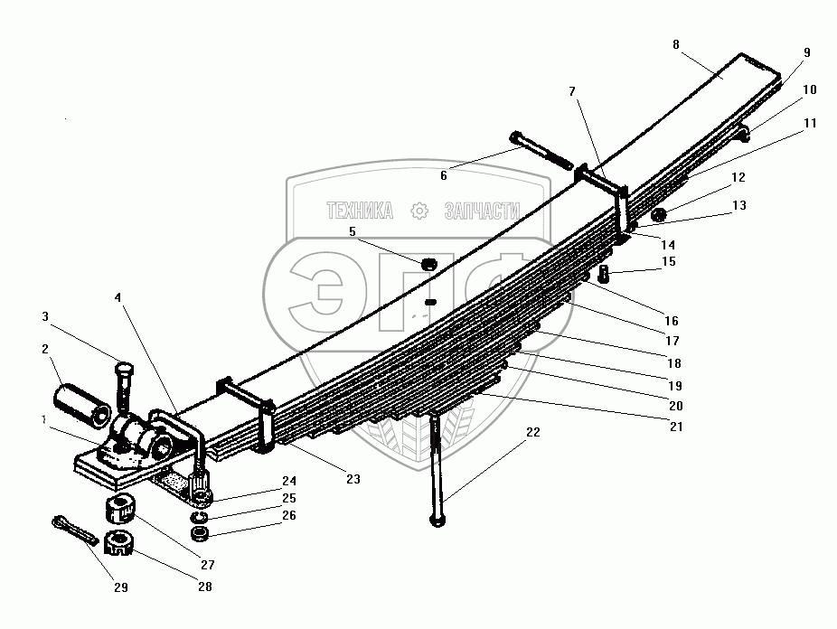 Каталог запасных частей к технике: УралАЗ УРАЛ-43206-41. Передняя рессора