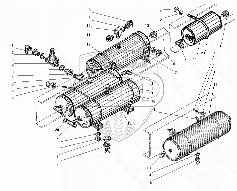 Каталог запасных частей к технике: УралАЗ УРАЛ-43206-41. Установка воздушных баллонов