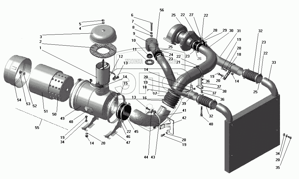 Каталог запасных частей к технике: УралАЗ УРАЛ-43206-41. Воздухопровод с воздушным фильтром