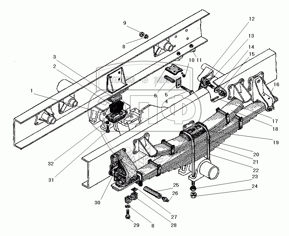 Каталог запасных частей к технике: УралАЗ УРАЛ-43206-41. Задняя подвеска