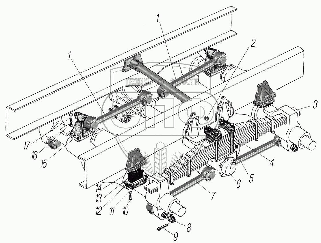 Каталог запасных частей к технике: УралАЗ УРАЛ-4320-0971-58. Задняя балансирная подвеска