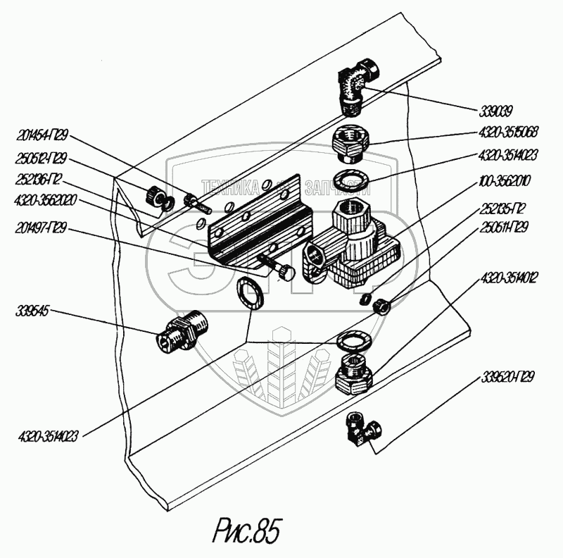 Каталог запасных частей к технике: УралАЗ УРАЛ-4320-31. Установка двухмагистрального клапана